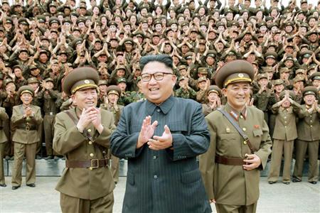 北朝鮮の労働新聞が15日掲載した、朝鮮人民軍戦略軍司令部を視察する金正恩朝鮮労働党委員長(中央)の写真(コリアメディア提供・共同)【拡大】
