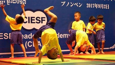 おそろいの黄色いシャツを着た3~4歳の子供たちが、壁に向かって一斉に逆立ちをする。カンボジアの首都プノンペンにある「シーセフリーダーズアカデミー」の授業の一場面だ。「最初はまったくできなかったけれど、1年弱でほとんどの子ができるようになった。幼児期の体力づくりも大切な教育の一環」と、アカデミー校長の土居清美さんは言う。