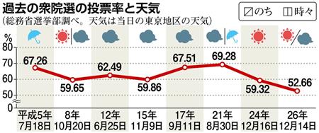 投票率が下がれば、組織力や強い支持基盤を持つ自民、公明両党に有利で、無党派層に期待する野党にマイナスとの見方がある。
