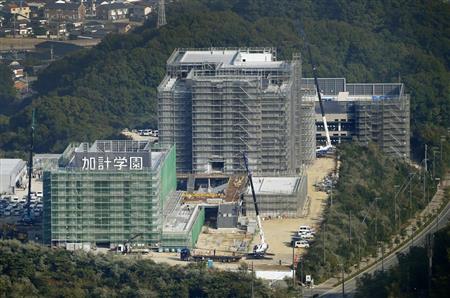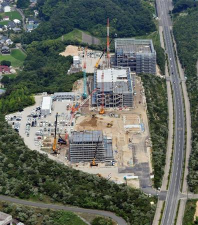 加計学園が建設中の岡山理科大獣医学部=6日、愛媛県今治市(共同通信社ヘリから)【拡大】