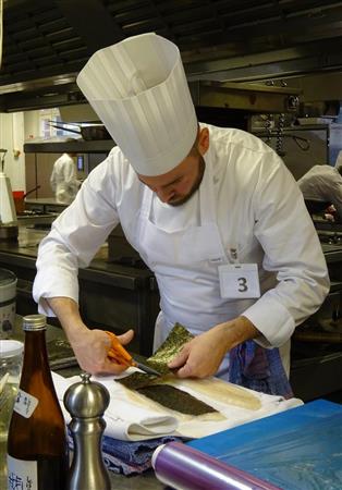 優勝したのは、アルザス地方のレストラン「ル・パルク」のシェフ、シリル・ボナールさん(34)。受賞作は「海苔を添えたヒラメのディエッペ風(クリーム煮)」で、わさびで風味を付けたほうれん草を付け合わせにした。「バターのソースに米を入れ、コクをだしました。魚を蒸す時は、アルザス・ワインに日本酒を加えて香りに変化を付けた。フランス伝統料理に日本の素材を加えることで、新しい発見ができました」と話した。受賞した料理は今後、レストランで出す予定。