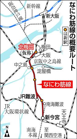 昨年11月に府・大阪市と鉄道事業者が事業スキームなどについて基本合意しており、来年度から路線整備を担う第三セクター「関西高速鉄道」が環境調査やトンネル、駅などを含めた概略設計に着手する。府はその費用の一部として5千万円を出資するほか、建設中の北梅田駅の整備費として市に4億円の補助を行う。