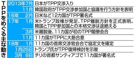 TPPには韓国のほかコロンビアなど複数の国・地域が関心を寄せる。協定文には参加国の拡大が明記されており、発効後に韓国も含めて加入の可能性を検討することになる。