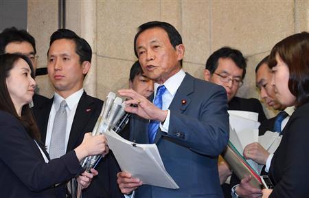 学校法人「森友学園」の国有地売却をめぐり、財務省が決裁文書の書き換えを認めたことを受け、麻生太郎財務相は12日、同省内で記者団の取材に応じ、「書き換えがあったのは(森友学園への格安の払い下げ問題が発覚した)昨年2月下旬から4月で、理財局で14件の(文書で)書き換えがあった」と述べた。自身の進退については「考えていない」と語った。