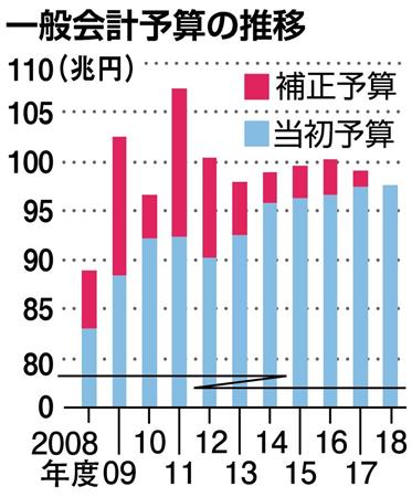 政府が2019年度予算の編成に際し、19年10月の消費税増税後の景気の落ち込み対策として、当初予算に経済対策費用を盛り込む方向で検討していることが18日、分かった。経済対策は補正予算で手当てするのが一般的だが、異例の対応により当初予算として初めて100兆円を超える可能性が高まっている。各省庁も対策に盛り込む内容の検討を開始しているが、専門家からは当初予算が膨らむことで、更なる財政悪化を懸念する声も上がっている。