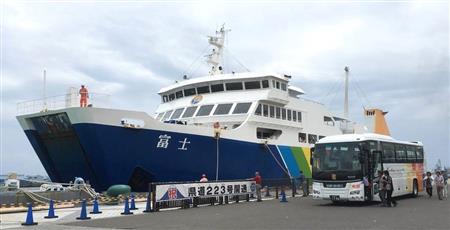 駿河湾フェリーは14年に清水港-土肥港の航路で運航を始めたが、17年8月期以降は燃料費やドックなどの維持費がかさみ赤字を継続。県道223号の認定や富士山の世界文化遺産登録が追い風となり26年8月期は年間22万8千人の乗客を集めたが、伊豆縦貫道の整備や貸し切りバスの利用者が増大したことが逆風に。29年8月期は輸送人員が17万3千人、事業損益は1億円近くの赤字となった。「この航路が地域の観光に必要不可欠なものだということは痛いほど分かっている。期待に背いてしまいおわびしたい」と同社の鈴木洋一社長は無念さをにじませた。