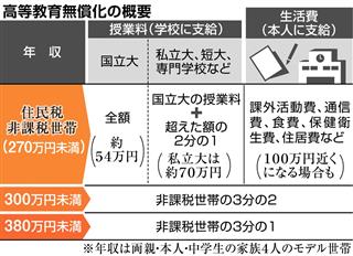 「手厚い制度にしたため、このままでは不正を働く人たちが出てくる可能性がある」。ある政府関係者はそう懸念する。無償化の対象者には授業料だけでなく、住居費や食費などの生活費も支給されることになった。アルバイトをすることなく学業に専念してもらうためだ。具体的な助成額は今後の制度設計の中で決める予定だが、親元を離れて暮らす場合などは年100万円近く支給されるケースも想定されている。