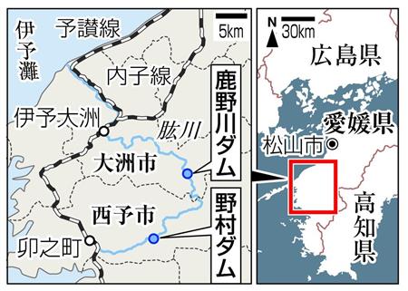 国土交通省四国地方整備局によると、両ダムは流入量が一定程度になるまでそのまま放流。8年6月の改定で、野村ダムは放流を始める流入量を毎秒500トンから300トンに変更し、放流のタイミングを早めた。