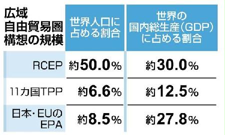 日本は米国を除いたTPP11、欧州連合(EU)との経済連携協定(EPA)でそれぞれ来年の発効を目指している。さらに日本や中国など16カ国が参加する東アジア地域包括的経済連携(RCEP)の年内妥結も視野に入れる。自由貿易圏を広げることで米国を不利にし、トランプ政権の外堀を埋める狙いだ。