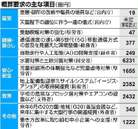 経済産業省が発表した概算要求額は、平成30年度当初予算と比べて10・0%増の1兆4085億円。安倍政権が生産性革命を重点政策に掲げる中、AIなどデジタル技術が浸透する社会の実現に向けた施策に重点を置いた。地球温暖化の原因となる二酸化炭素(CO2)の排出をなくす「脱炭素化」の推進なども盛り込んだ。