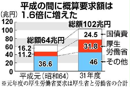 要求額は、一般会計のほかに、エネルギー対策と特許の両特別会計を含む。