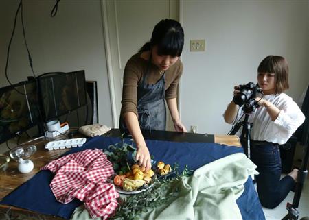 料理レシピの動画を撮影するテイストメイドのスタッフ=18日、東京都港区【拡大】