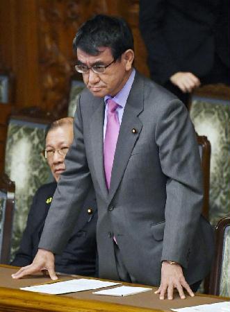 参院本会議で日欧経済連携協定が承認され、議場に一礼する河野太郎外相=8日午前1時57分【拡大】