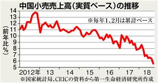 中国の個人消費市場をめぐっては近年の電子商取引(EC)の爆発的な普及も追い風となり、高い伸びが続くなど注目を集めている。最近では日本をはじめとする海外製品を取り扱う「越境EC」への日本企業の参入も相次いでおり、消費市場としての中国の存在感はいやが上にも高まっている。ただ、足元ではその勢いに陰りが出るなど変調の兆しもうかがえる。ここでは、今後の中国消費市場がどのようになり得るかを考える。(第一生命経済研究所・西浜徹)