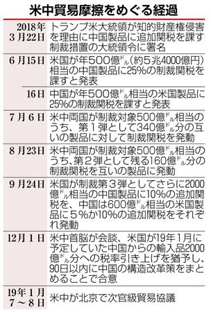 米中両政府が北京で開いた次官級貿易協議は最終日の2日目を迎えた。摩擦解消に向け、中国経済の構造改革や両国間の貿易不均衡の改善策を話し合った。2日間の協議を踏まえて今月中にも閣僚級協議を開き、3月1日の期限までの妥結を目指し、交渉を加速させる。