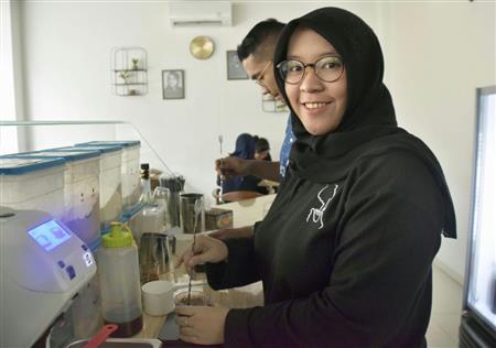 年5%前後の経済成長を続けるインドネシアは昨年10月、ジャカルタでアジアパラ大会を初開催したが、歩道整備や手すりの設置など障害者のための社会基盤整備はまだまだ不十分。カフェは、コーヒー事業を通して聴覚障害者の仲間に活力を与える目標を掲げる。プトリさんは「将来は国外にも出店したい」と展望を語った。(ジャカルタ 共同)