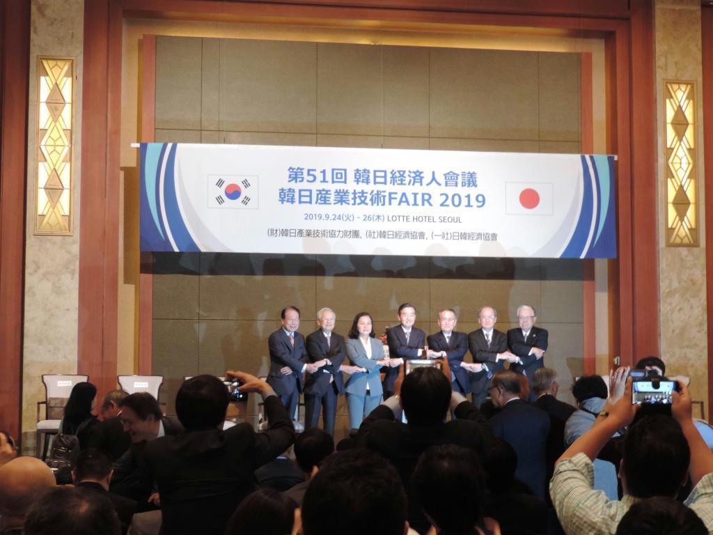 日韓経済協会の佐々木幹夫会長(三菱商事特別顧問)は「日韓関係は出口が見えない極めて厳しい状況」とした上で、「経済と政治・外交は車の両輪で、両国間の政治・外交問題の修復はどうしても必要」と求めた。日本製品の不買運動にも言及し、日本企業だけではなく、韓国の消費者にもダメージを与えていると憂慮した。