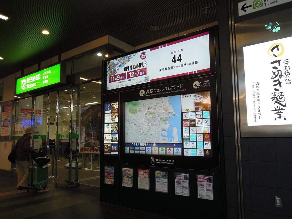 JR四国は、駅周辺の観光施設や店舗、フェリー、バス乗り場などを多言語で案内するデジタルサイネージ(電子看板)を高松駅に設置し、運用を始めた。
