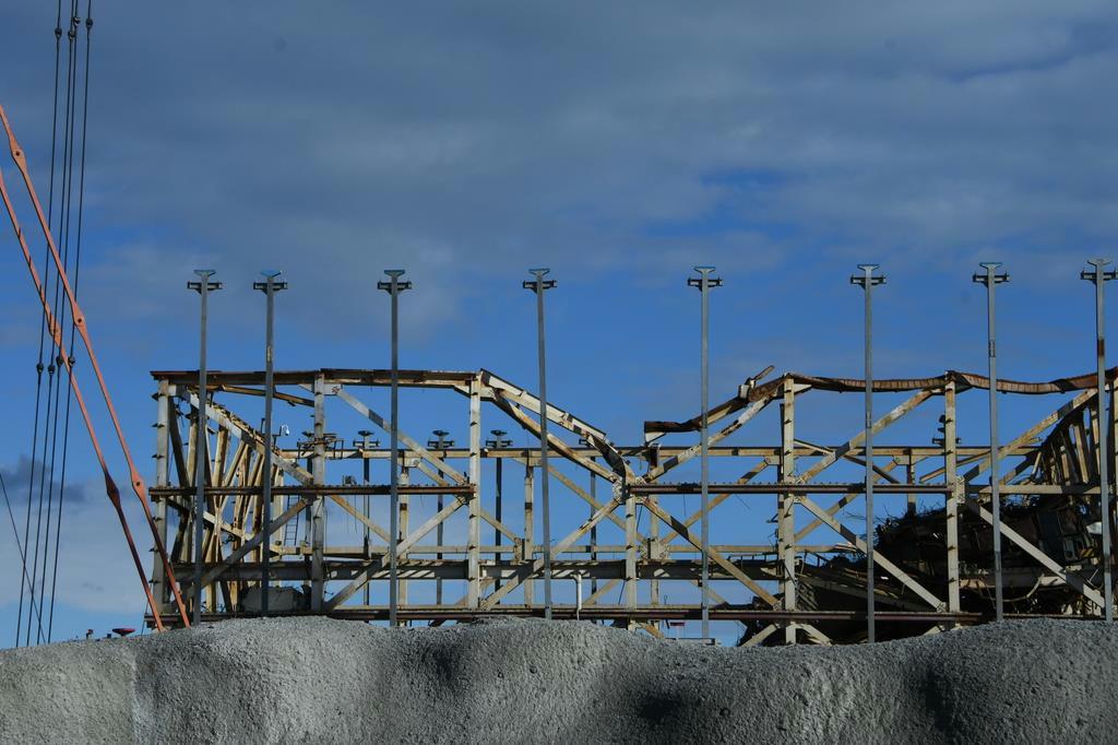 1号機の真横では、高さ120メートルの排気筒の解体が11月に始まった。被曝線量が比較的高いため、最上部に取り付けた解体装置を遠隔操作し、筒を輪切りにする。だが、途中で装置にトラブルが発生し、東電は人力による切断に踏み切った。訪問した日に人力作業が終わったところで、今後は装置による切断を再開する。ただ、切断できたのは約10メートルに過ぎず、東電が目標とした来年3月までの解体完了は断念する方向となった。