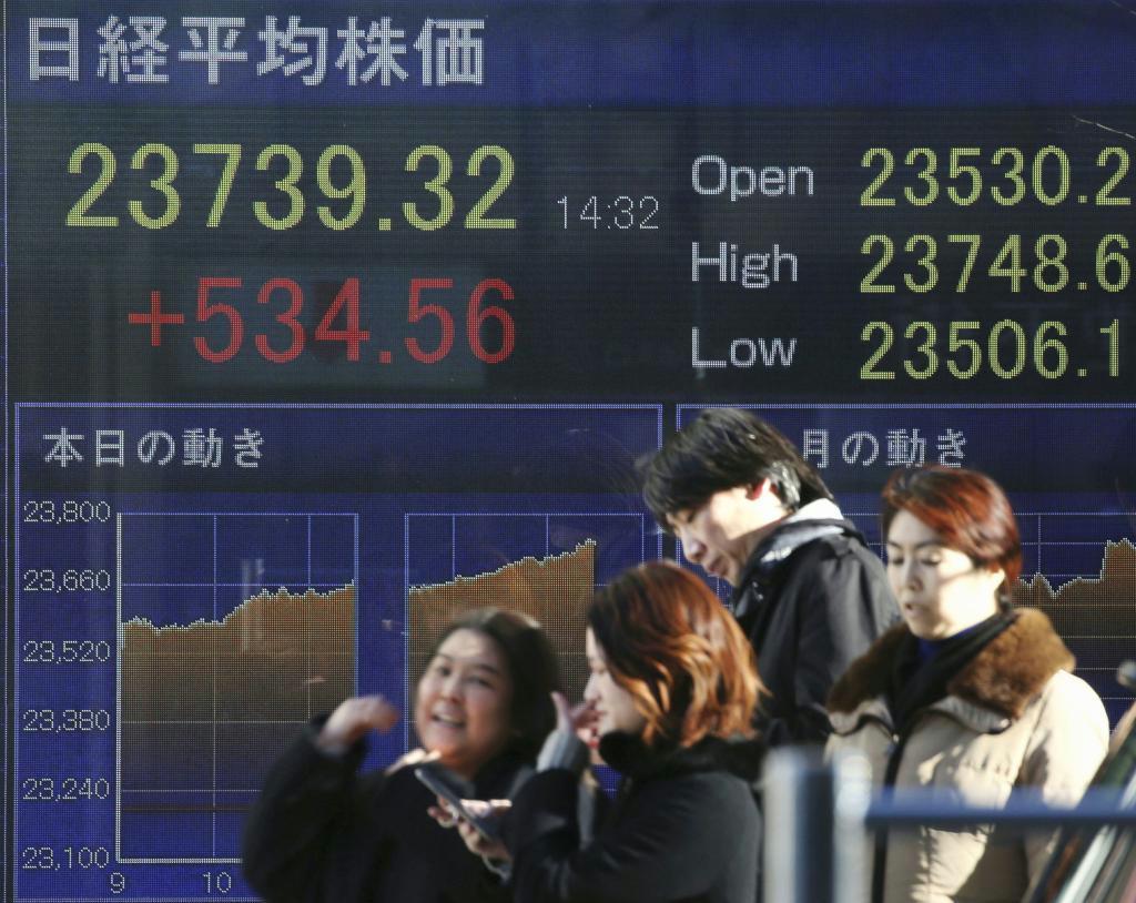 9日の東京株式市場は、米国とイランの軍事的な全面衝突の懸念が後退したことを受けて買い注文が膨らみ、日経平均株価は大幅反発した。終値は前日比535円11銭高の2万3739円87銭で、昨年12月27日以来約2週間ぶりの高値を付けた。円安ドル高進行や原油先物の下落も株式相場の追い風となった。