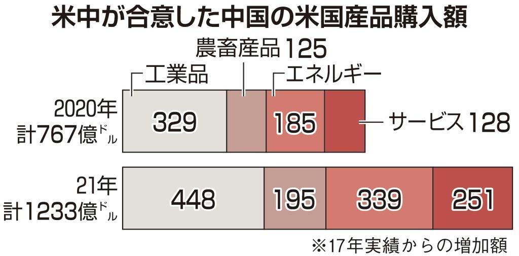 第1段階の合意では、産業補助金廃止といった経済構造改革については踏み込み不足で、中国側が比較的応じやすいメニューが並ぶと指摘される。一方で、米製品の購入を5割程度増やすといった中国側が実行を約束する項目が中心で、この点について批判する対米強硬派も少なくない。