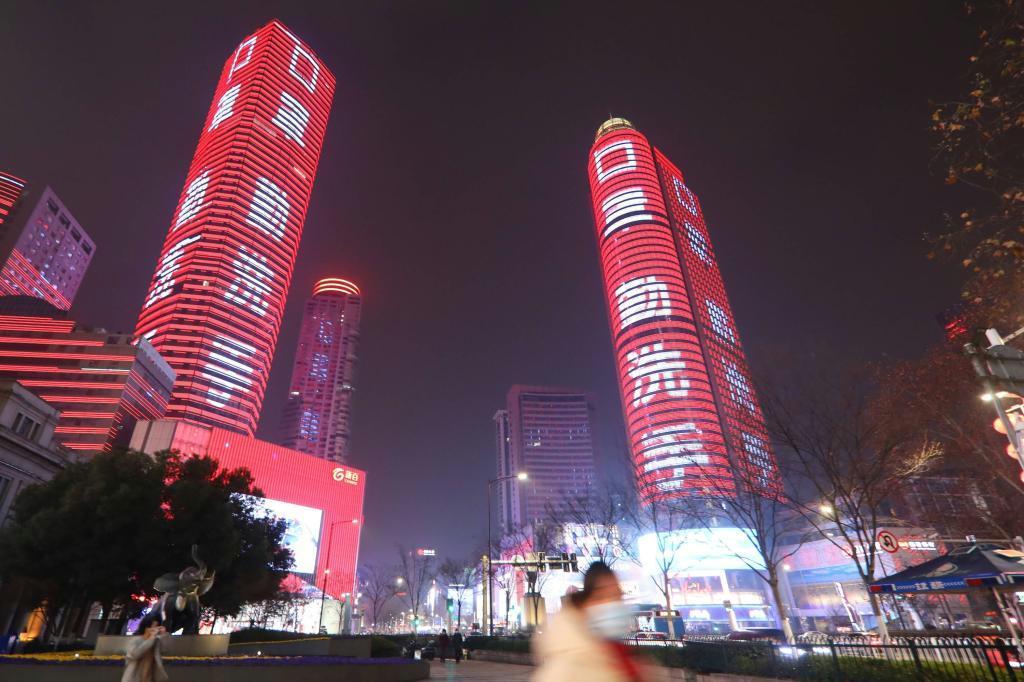 海外情勢 南京、高層ビルで「防疫標語」 中国新聞 2020.1.31 05:00 print mail 江蘇省南京市の繁華街。高層ビルの外壁で「マスクを着用しよう」「こまめに手を洗おう」「武漢頑張れ」など防疫標語のライトアップが行われている。(中国新聞社) (中国新聞社)