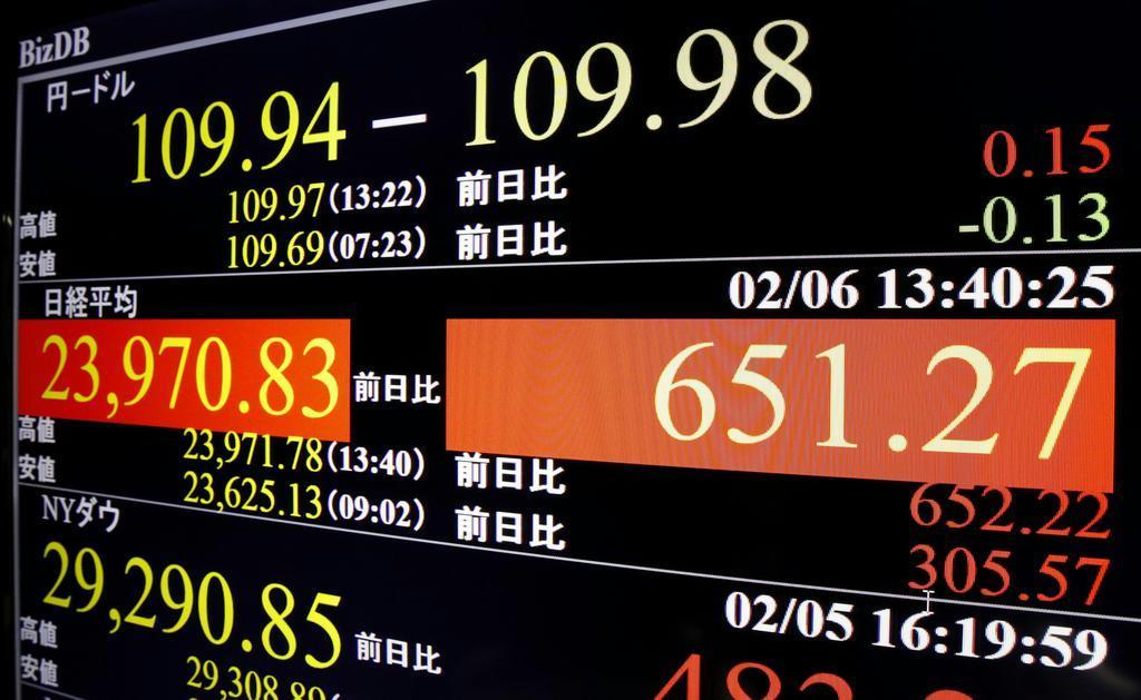 6日の東京株式市場は、肺炎を引き起こす新型コロナウイルスの感染拡大への警戒感が和らぎ、ほぼ全面高の展開となった。日経平均株価の終値は前日比554円03銭高の2万3873円59銭。上げ幅は今年最大で、一時600円を超える場面もあった。