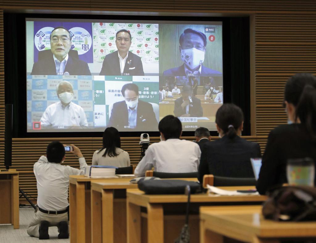 広瀬勝貞大分県知事は、大阪府など東京以外の地域での感染拡大を念頭に「他の地域に感染が広がった場合、国の決定を待つのではなく、知事会として強く(移動の)自粛を求めるべきだ」とし、対応が後手に回ることを懸念した。河野俊嗣宮崎県知事は、コロナ対応をめぐり「国と地方が責任を言い合う場面がクローズアップされ、国民の不信感を増幅している」と指摘。「知事会として、今こそ地に足がついた取り組みを情報発信する必要がある」と冷静な対応を呼び掛けた。