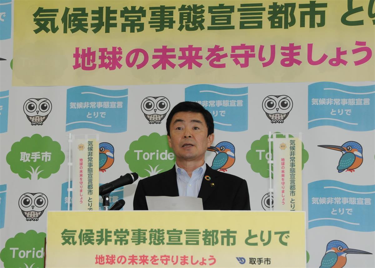 九州や東北地方の豪雨災害など異常気象が続く中、茨城県取手市は3日、温暖化対策に総力を挙げて取り組む決意を示す「気候非常事態宣言」を表明した。宣言の表明は県内の自治体では初めて。異常気象は地球温暖化が原因とされ、持続可能な地域社会を構築する観点から、温暖化対策の必要性をアピールする狙いがある。(篠崎理)
