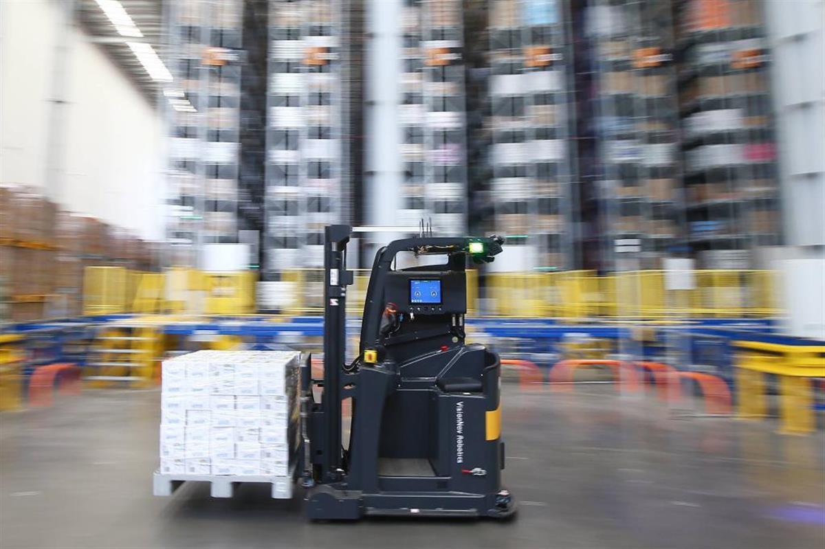 同倉庫では自動運転のフォークリフトや自動搬送ロボット、ロボットアーム、自動包装機など多くの先端技術が取り入れられている。商品の搬入や陳列、保管、補充、必要な商品を取り出すピッキング、包装、ラベリング、最終的な仕分けまでの全工程で「無人化操作」を実現した。