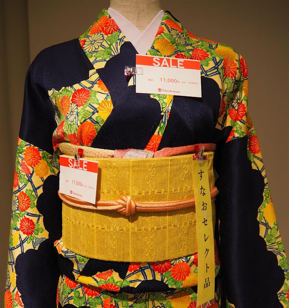 この日は、台風12号の接近にもかかわらず、目標を上回る100人超がお買い上げ。同店では30日で終了するが、来年2月まで各地の高島屋で内容を変えながらリユース着物催事を展開するほか、10月4日には千葉県の柏店で常設の売り場もオープンする。
