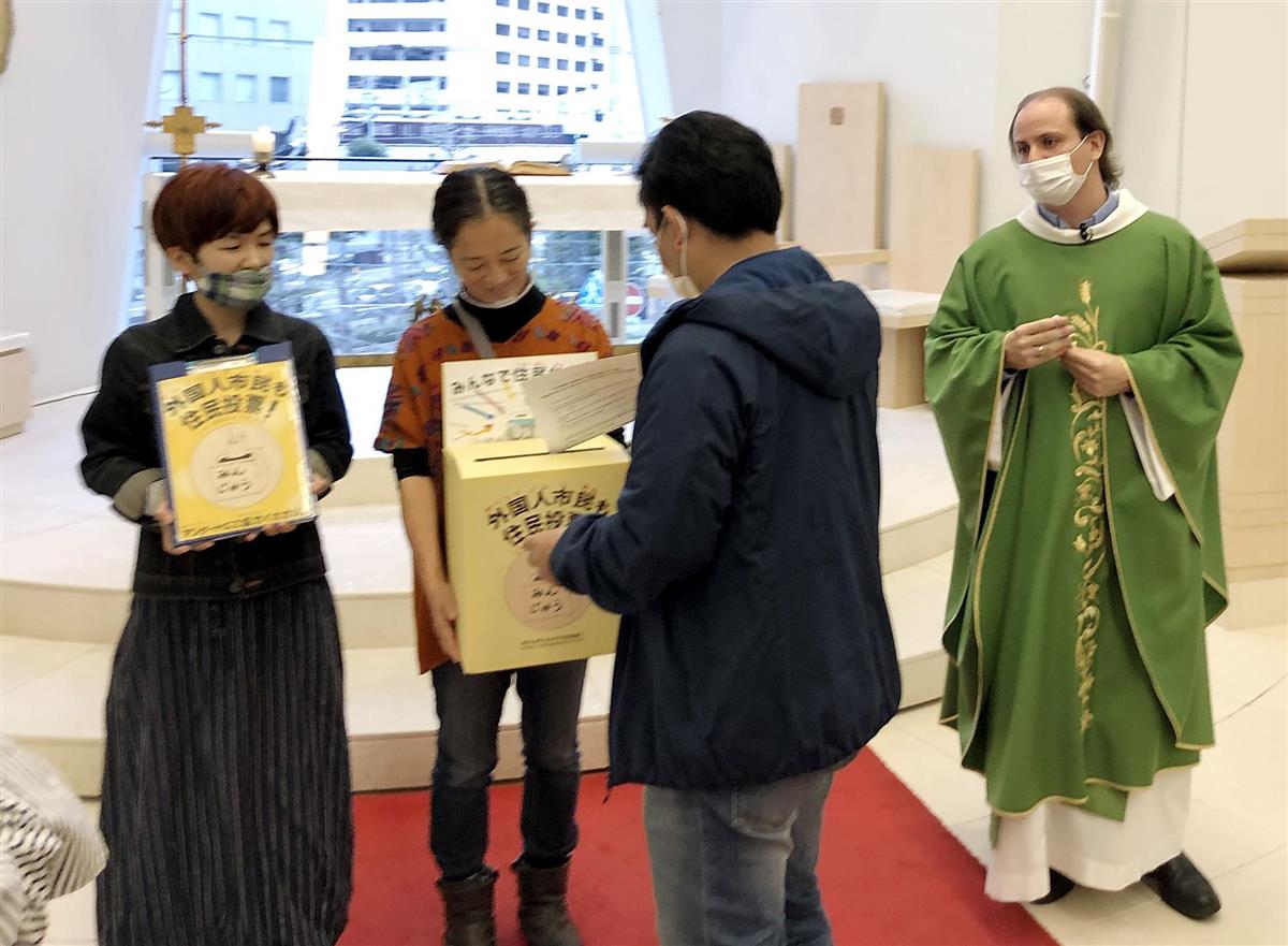 フィリピンやインドネシアなど多国籍の信者が集まるカトリック大阪梅田教会(大阪市北区)では今月18日のミサの後、約60人がアンケートに回答。フィリピン人の会社員、サニー・サトルさん(54)は「外国人も大阪の住民として地域に貢献したいと思っている」と話した。