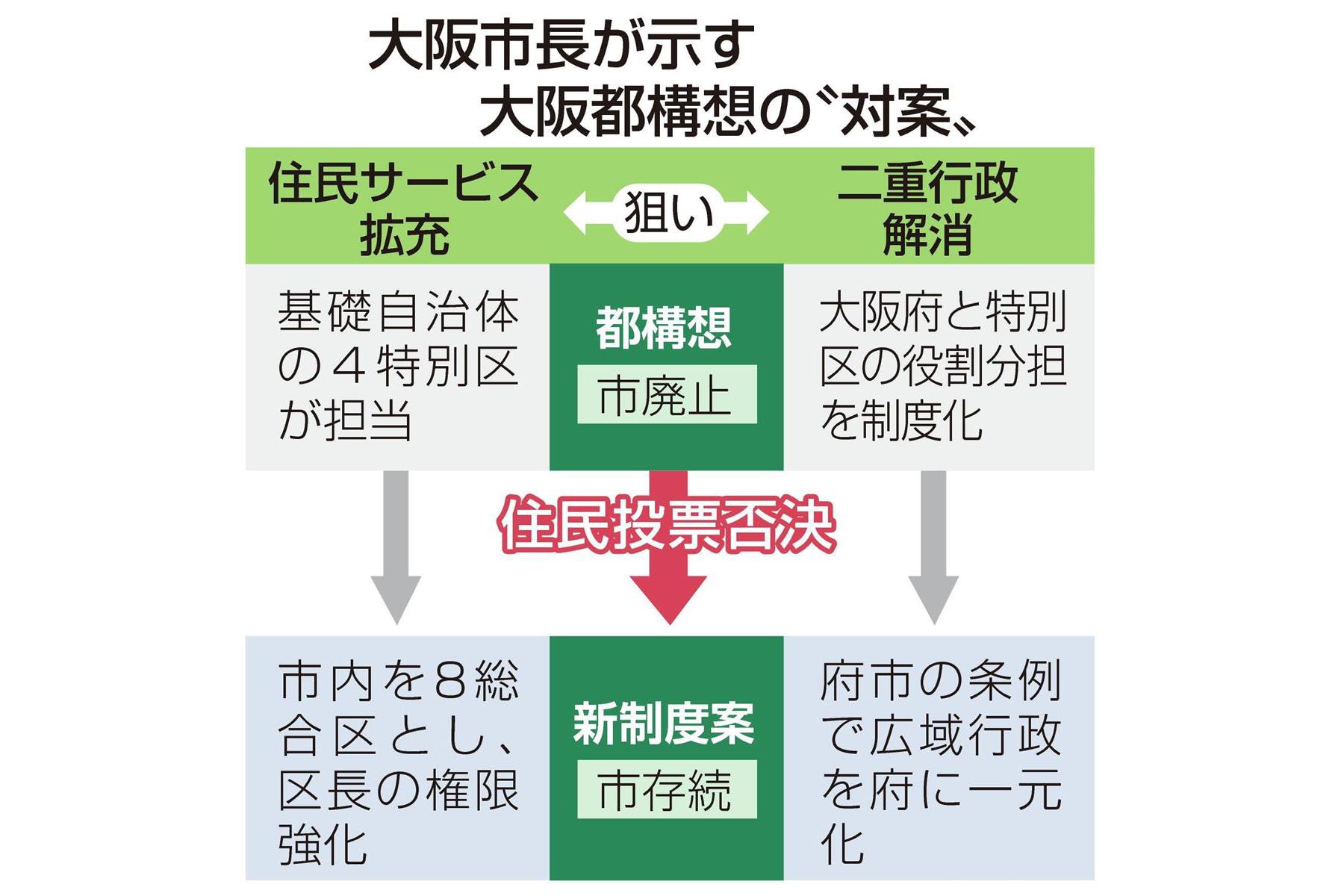 大阪では27年の前回の住民投票後、公明党が大阪都構想の対案として導入を主張。吉村洋文・大阪府知事(大阪維新の会代表代行)の市長時代、現在の24行政区を8総合区に再編する案を取りまとめ、都構想と並行して協議されたが、公明は都構想推進に転じたため、取り下げた。