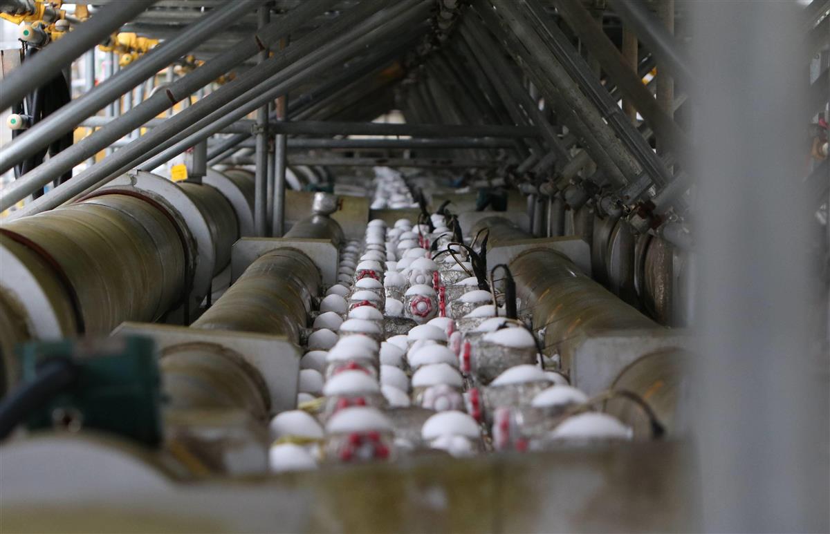 「トンネル工事の技術を応用している」(同行したスタッフ)とのこと。マイナス30度の冷却液が流れる配管の周辺は、霜がびっしりと付いていた。