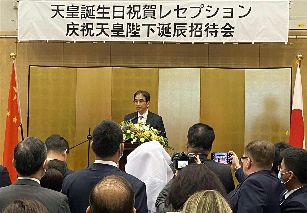 【北京=三塚聖平】北京の日本大使館で31日、天皇誕生日祝賀レセプションが開かれた。昨年は新型コロナウイルスの流行により開かれておらず、令和になって初めての開催となった。会場には日中の政治・経済関係者や、北京にある各国の大使館関係者が訪れた。