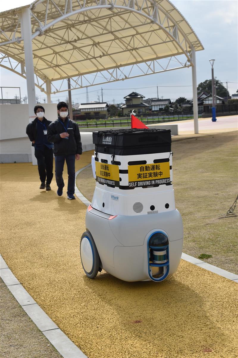 茨城県筑西市は2日、三菱商事など6社と、小型自動配送ロボットの公道走行実証実験を同市の道の駅「グランテラス筑西」と周辺道路で始めた。同市などによると、自動運転技術とルート最適化技術を搭載する2台のロボットが連携し、農作物の集荷や商品配送の実証実験を行うのは国内初だという。13日まで。