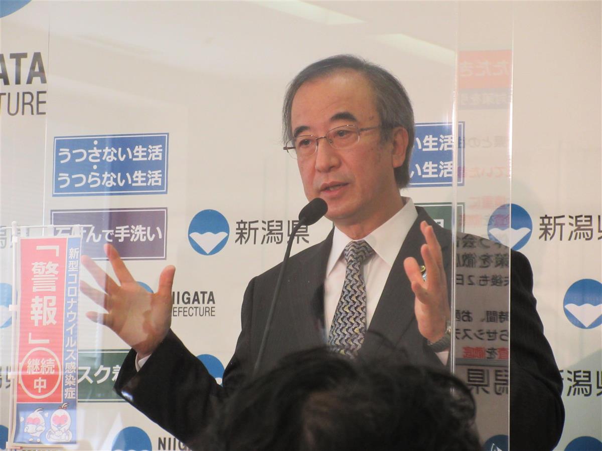 新潟県の花角英世知事は15日の定例会見で、16日に開催する県新型コロナウイルス感染症対策本部会議で飲食店への営業時間の短縮(時短)要請を議論することを明らかにした。県内の新型コロナ感染に伴う病床使用率は14日現在、36%に上昇。知事は「強い措置を講じざるを得ない状況」との認識を示した。