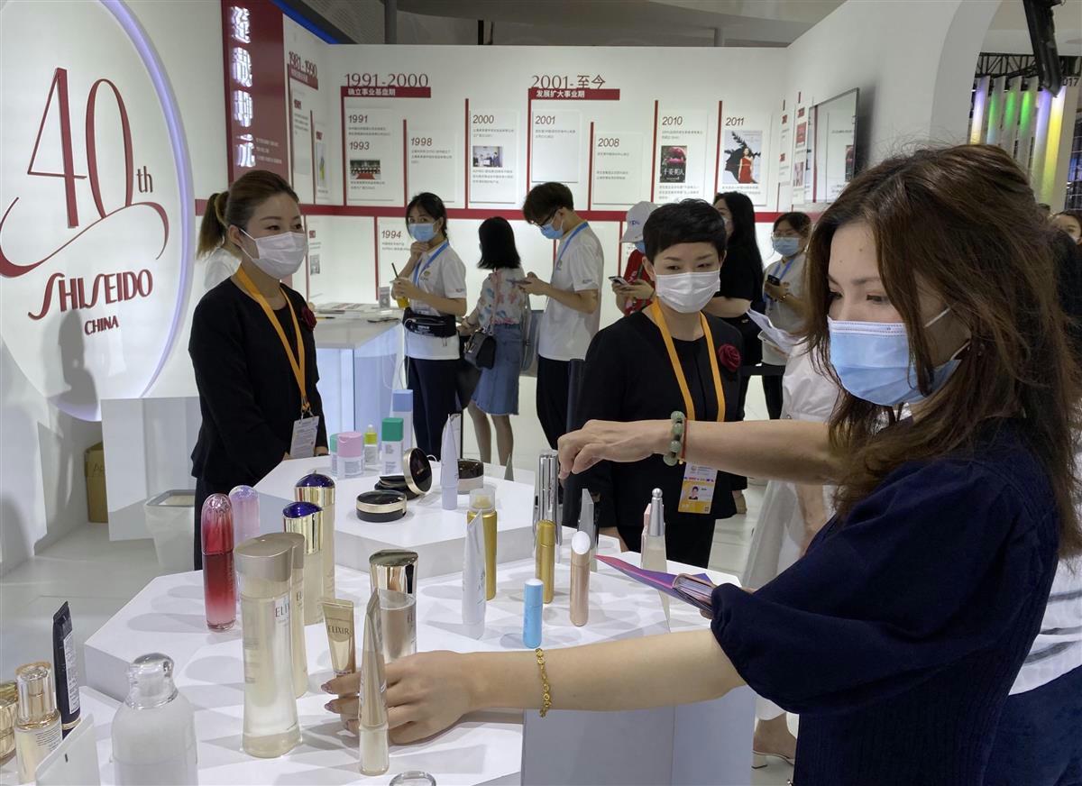 資生堂は、年内に中国市場への投入を予定するスキンケアの高級ブランド「ザ・ギンザ」などを展示。ブースを訪れた地元の販売業者の男性は「日本製品に興味がある」と担当者に熱心に質問をしていた。