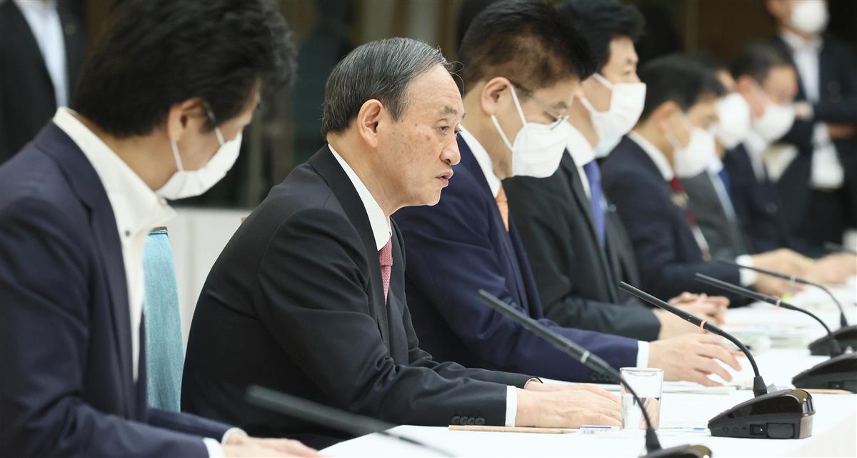 21日夕に官邸で開かれた政府の新型コロナウイルス対策本部での菅義偉(すが・よしひで)首相のあいさつは次の通り。