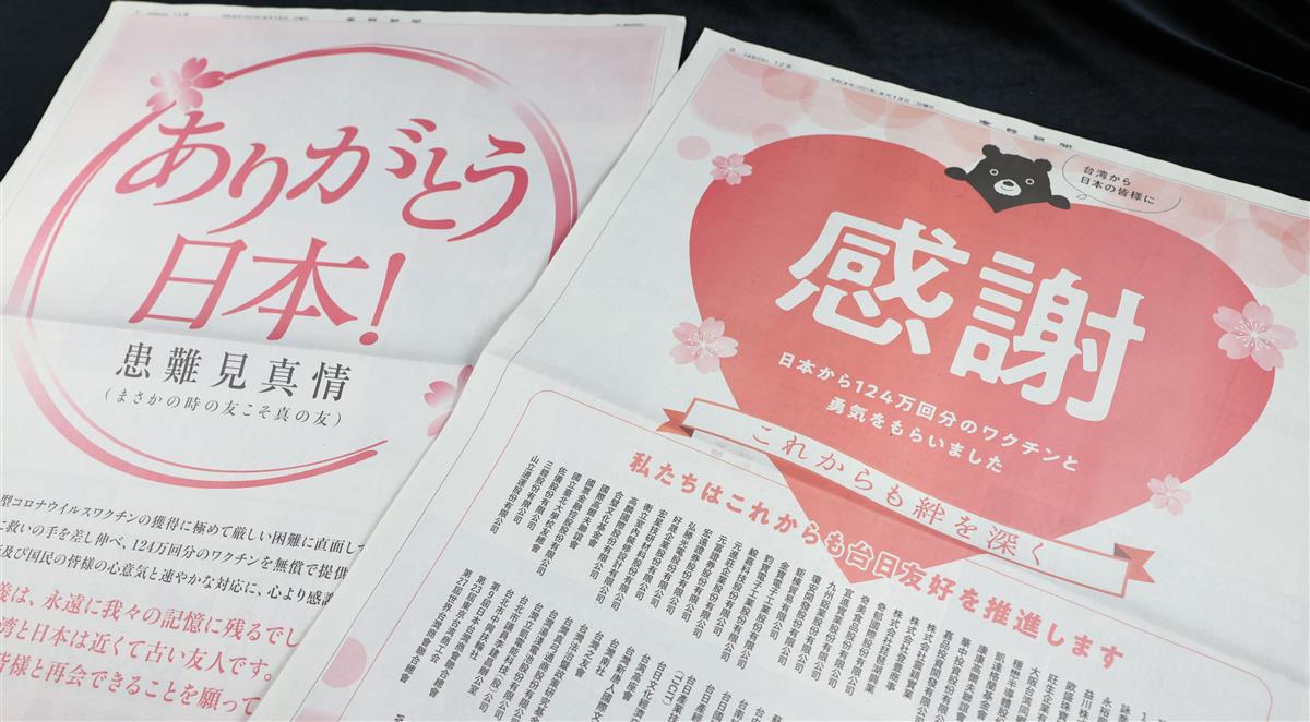 これらの企業と団体は、今回の広告を通じて、ワクチン提供への感謝とともに、これからも日本と友好関係を推進したい気持ちを日本の読者に伝えようとしているという。(台北 矢板明夫)