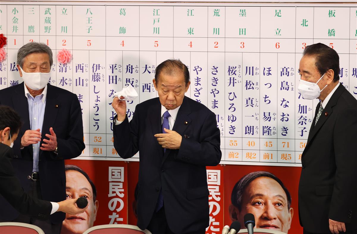 「東京都連や候補者の懸命な戦いによって、議席を多少増やすことができる状況のようだ」。自民の二階俊博幹事長は4日夜、都連の選対本部でこうあいさつした。一方、山口泰明選対委員長は党本部で記者団に、「残念ながら自公で過半数割れが確実になった。どこが足らなかったのかを精査し、来るべき衆院選に臨んでいかないといけない」と課題を口にした。