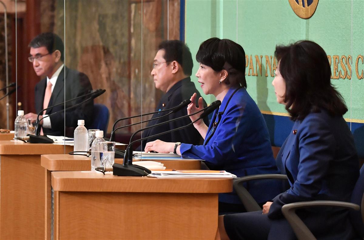 河野太郎ワクチン担当相は18日の日本記者クラブ主催の公開討論会で「強い人流抑制が必要になる可能性があるなら、それに備える必要がある。ロックダウンを可能にする法案を国会で作ってもらうのが大事だ」と強調。高市早苗前総務相は「最悪の事態を想定した法の整備は必要だ。与野党で合同チームを作って合意を得てから国会に出すのが現実的だ」と語った。