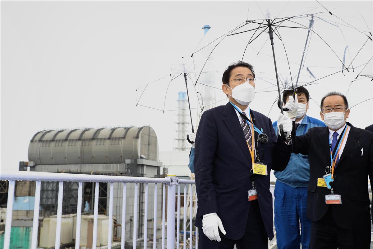 視察では東電幹部から廃炉の状況や処理水などについて説明を受け、首相は「廃炉が復興の前提だ。地元との信頼関係を大事にして、しっかりと作業を進めてほしい」と伝えた。