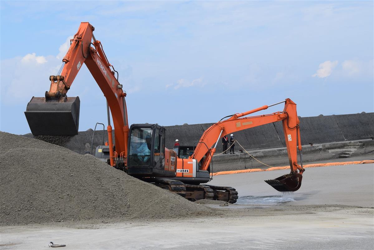 被害が深刻な国頭(くにがみ)村の辺(へん)土(と)名(な)漁港は10月中旬以降、まるでコンクリートを流し込んだように軽石で埋め尽くされた。県が29日から除去作業に乗り出し、11月2日までに大半を取り除いたが、新たな軽石が入らないよう、港の入り口はオイルフェンスなどで封鎖されたままだ。