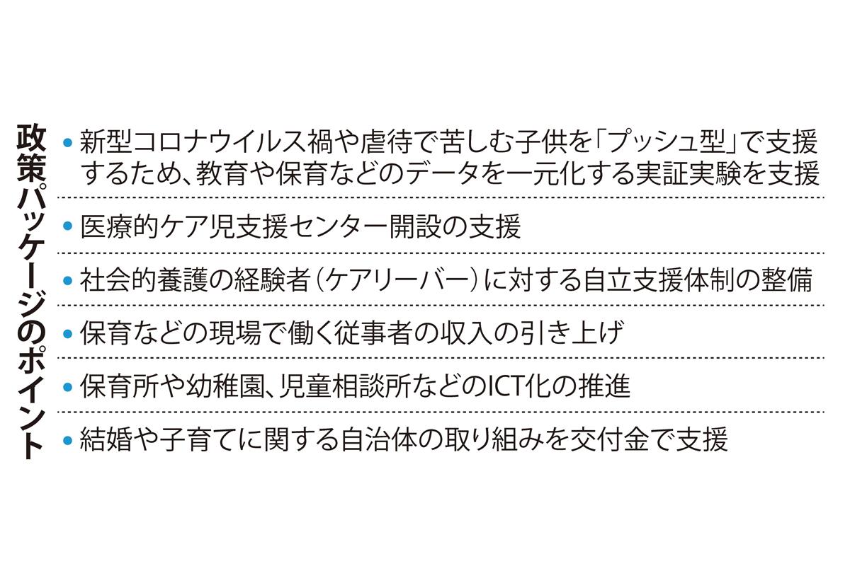 岸田文雄政権は子供に関する政策を一元管理する「こども庁」の創設に向けた議論を進めている。ただ、少子化や虐待などの課題がコロナ禍で深刻さを増したことを踏まえ、当面の課題に対応するために政策パッケージをまとめた。