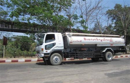 ミャンマー国内を走るトラック。インフラ整備とともに、物流業界も活況を呈してきている(栢下邦彦さん提供)