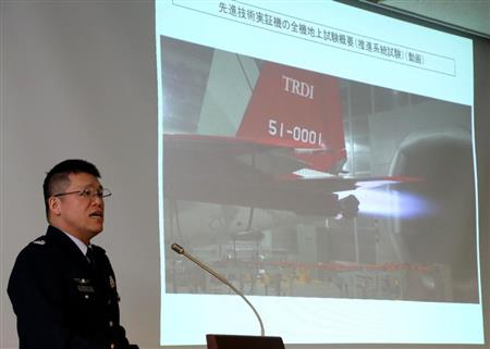 事前説明で公開された先進技術実証機のアフターバーナー燃焼実験=28日午後、愛知県豊山町(彦野公太朗撮影)