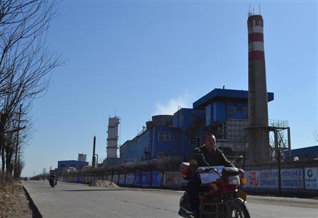 12日、週末も煙を上げる唐山市北部の製鉄所。設備にはさびが目立った(三塚聖平撮影)