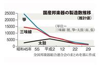 邦楽器をめぐる厳しい環境を説明する東京和楽器の大瀧勝弘代表=7月16日、東京都八王子市