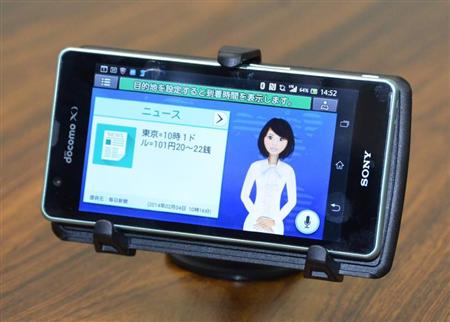 スマホに話しかけるだけで、クラウド上に集まったドライブをサポートする情報を教えてくれる新たなカーライフ支援サービスで、ドコモの音声エージェント「しゃべってコンシェル」の技術を応用している。「渋滞している?」、「今日のニュースを教えて」などと話しかけることで、最新の渋滞情報や天気予報、ニュース、周辺のグルメ情報、スケジュールなど必要な情報を提供してくれる。